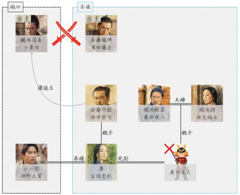 - 斎藤家は敗戦し、慶の婚家・堀池家は没落