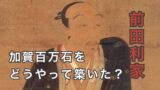 血気盛んで派手好きな「かぶき者」だが、槍(やり)の名手として数々の武功をあげ、秀吉と同世代の良きライバルとして出世争いを繰り広げる。やがて柴田勝家の与力として北陸方面軍の一翼を担うが、信長亡きあと勝家と秀吉が対立することになる。のちに五大老の一人として豊臣政権を支え、加賀百万石と称される加賀藩の礎を築く。