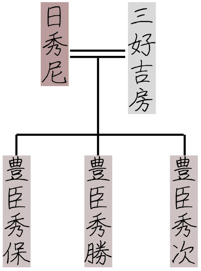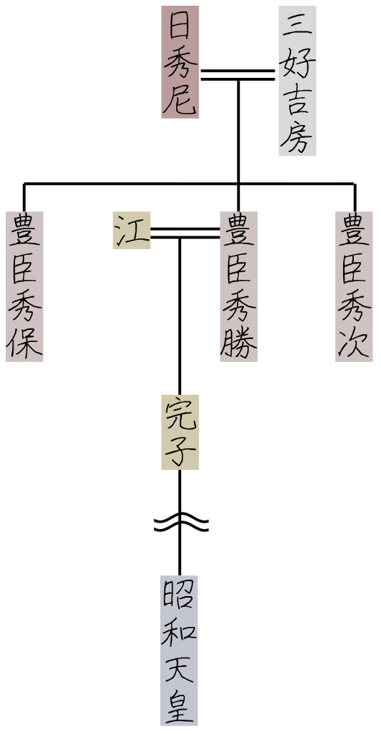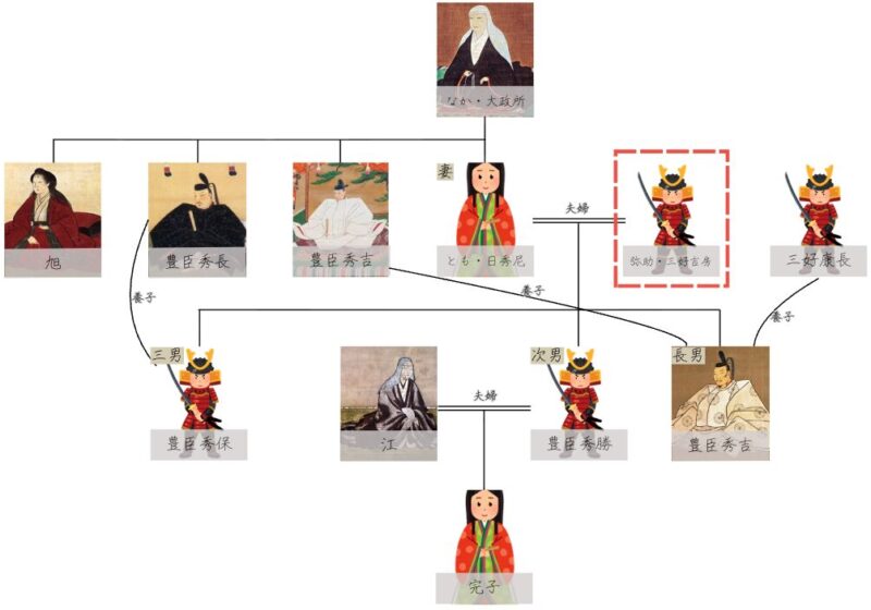 三好吉房には三人の息子がいましたが、長男の豊臣秀次の子は秀吉により処刑され、三男の豊臣秀保には子がいませんでした。しかし、次男の豊臣秀勝浅井長政三女・江と結婚し、一女・完子をもうけています。